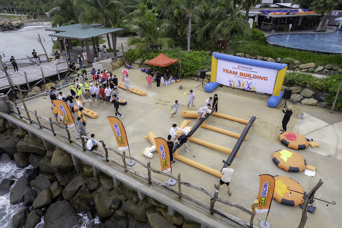 - Phần nội dung chính: Các thành viên sẽ cùng nhau vượt qua 4 thử thách chính trong chương trình team building